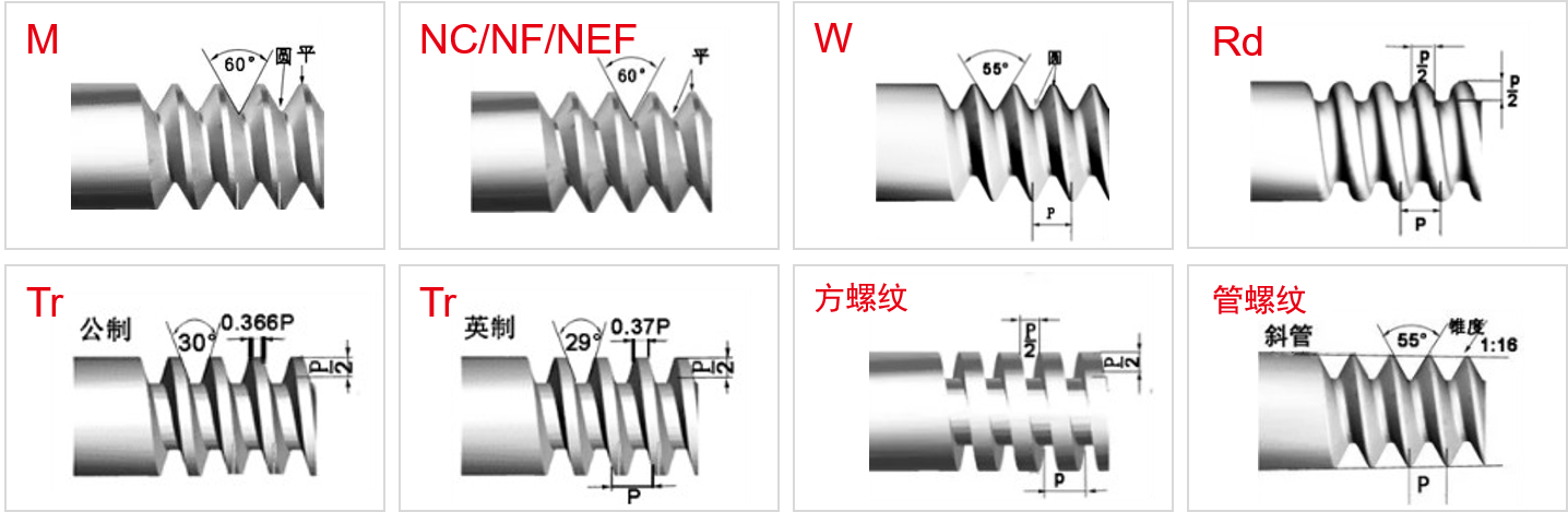 不同的螺紋標準有著不同的代號,以下主要介紹常見的幾種。